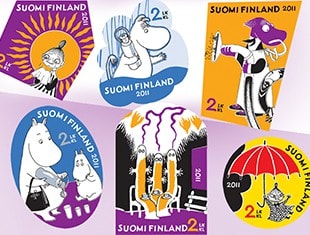 フィンランド郵便局ではムーミンの切手や絵葉書、小包用ボックスなど、ムーミンの絵柄のついた郵便グッズを販売しています、とってもおすすめ。