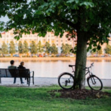 二人がドレスアップをして、水辺を歩く姿が大変ロマンチックな場所。ヘルシンキ市民にとっても憩いの場です。ヘルシンキの中でも最近注目を集めるカッリオ地区のエラインタルハンラハティ湾に面した場所にあります。8月下旬から9月上旬の2週間にわたり開催される芸術祭、ヘルシンキ・フェスティバルの期間中には、Huvila Festival Tentが設置され、各国から来たアーティストのコンサートで盛り上がります。歩くのに疲れたら近くにあるカフェ・ピリッタ(Café Piritta)に行ってみましょう。窓やテラスからは、ベイビューが一望できます。