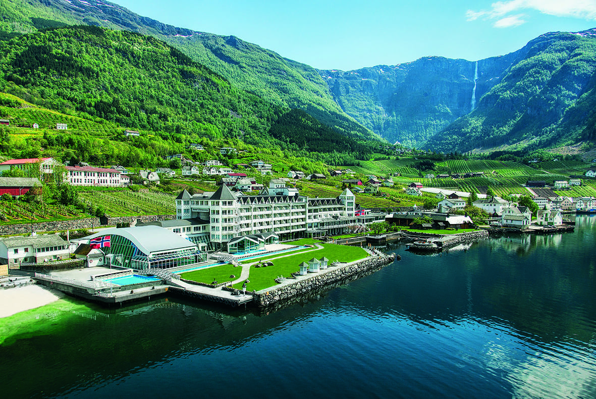フィヨルドが目の前にある老舗ホテルでの宿泊です。