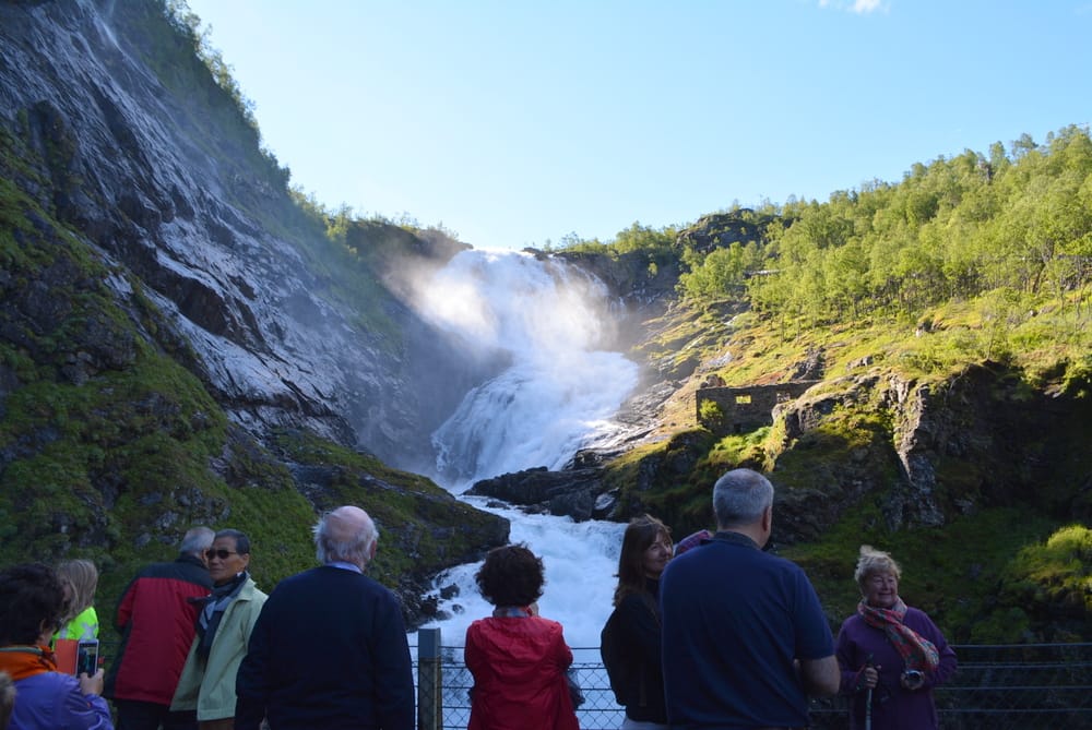 終日:ベルゲン【午前】→ソグネフィヨルド観光 → ベルゲン【夜】 列車 * にてミュルダールへ(約 1 時間 30 分)。 旅のハイライトは氷河により作られたダイナミックな峡湾「世界遺産ネーロイフィヨルドを含む世界最長・最深のソグネフィヨルド」の絶景を楽しみます。フロム山岳鉄道は、ミュルダール(標高867 m)からフロム間を谷間の急斜面や美しい渓谷に沿って走り、迫力満点です。サマーシーズンはショースの滝で5 分間ほど停車し記念写真を撮ることができます。(時期により車窓から美しい景観をご覧いただきます)。 |